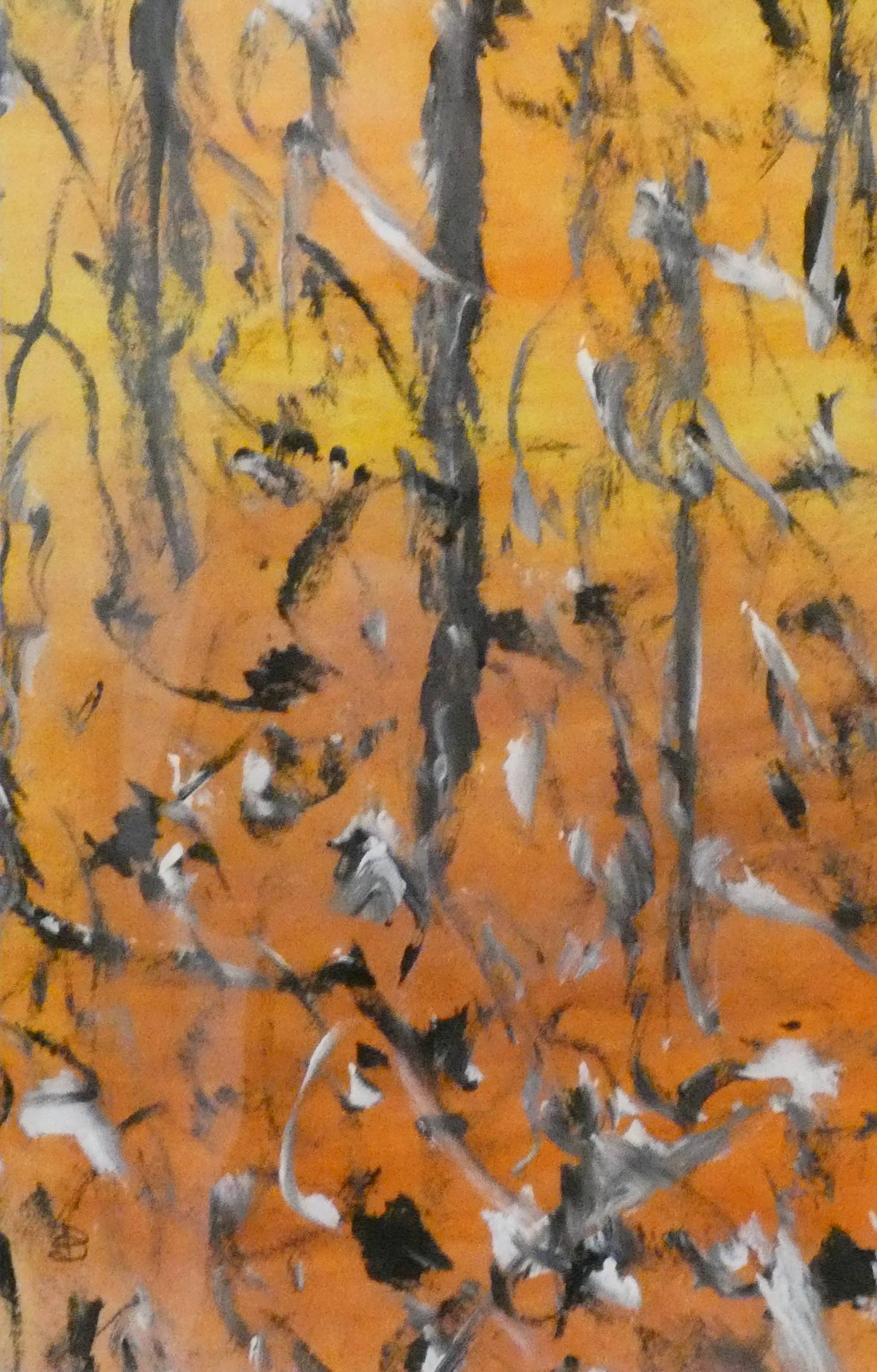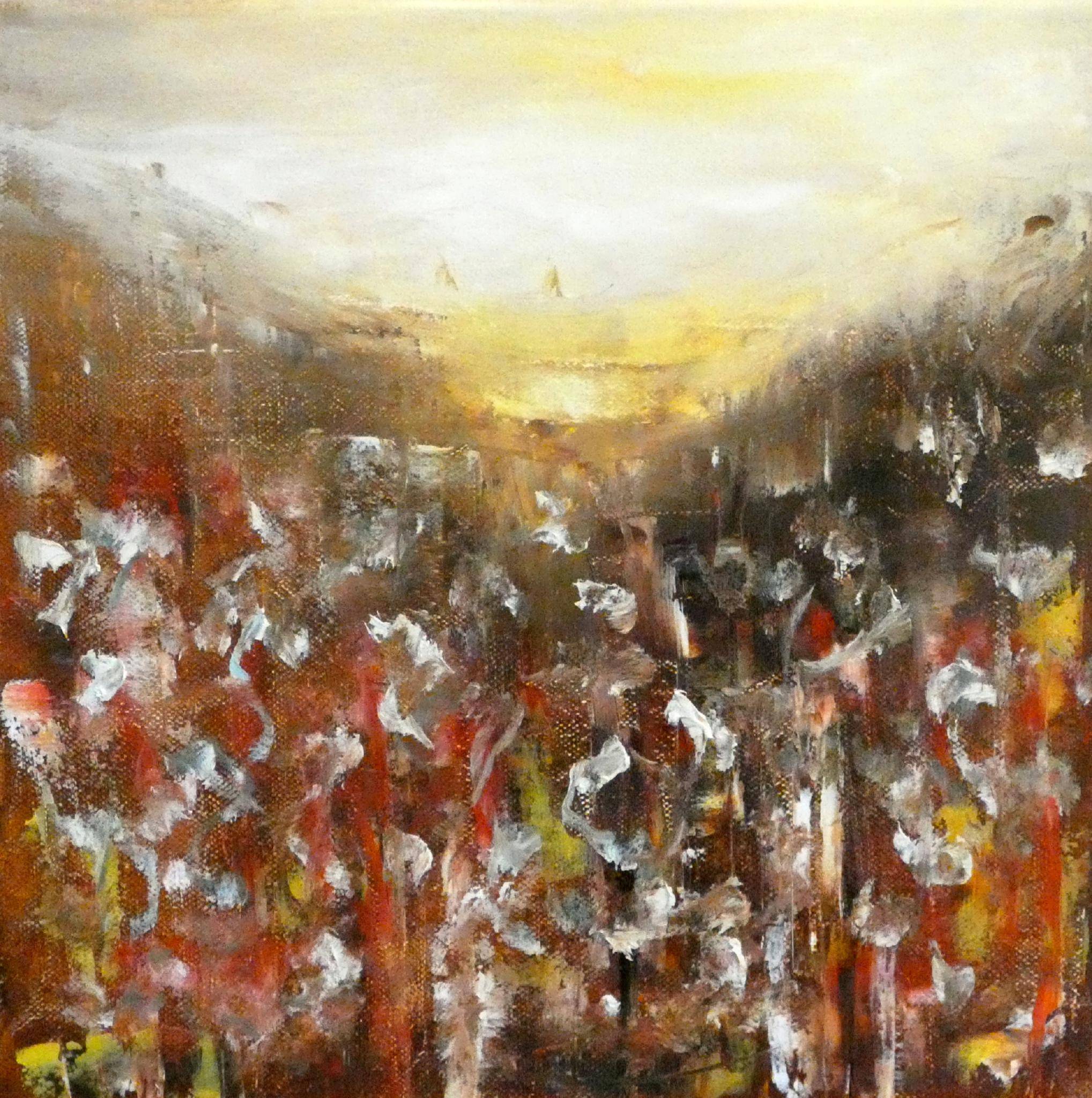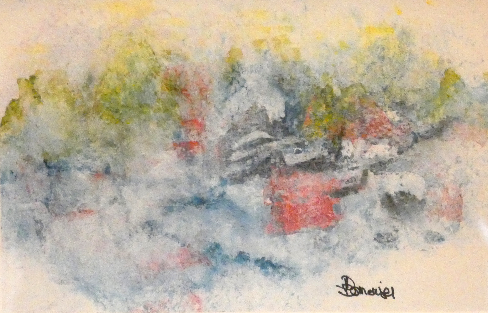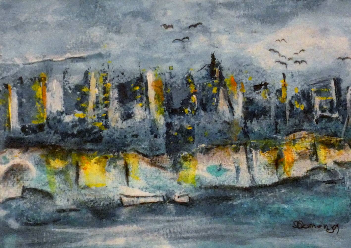 Mais quelle mouche l'a piquée pour qu'elle s'empare des quelques pinceaux, tubes et toiles achetés par son mari 'pour sa retraite' et qui restaient désespérément exposés à la poussière, à l'abandon ? Quelques cours plus tard et un peu comme ces limonades qui se réveillent lorsqu'on agite leur bouteille, elle surgit de nulle part et démontre que l'expression artistique se rit parfois des grands principes. De la technique, certes il en faut, mais pas au point de devenir handicapante.